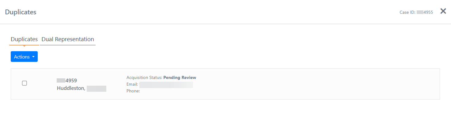 NOTE: If there are more than two duplicate cases, you can select any of their checkboxes on the tab, click the Actions button, then choose to view any or all of the selected cases. This returns you to the Cases Page where the selected cases will appear, as shown in Figure 2, above.