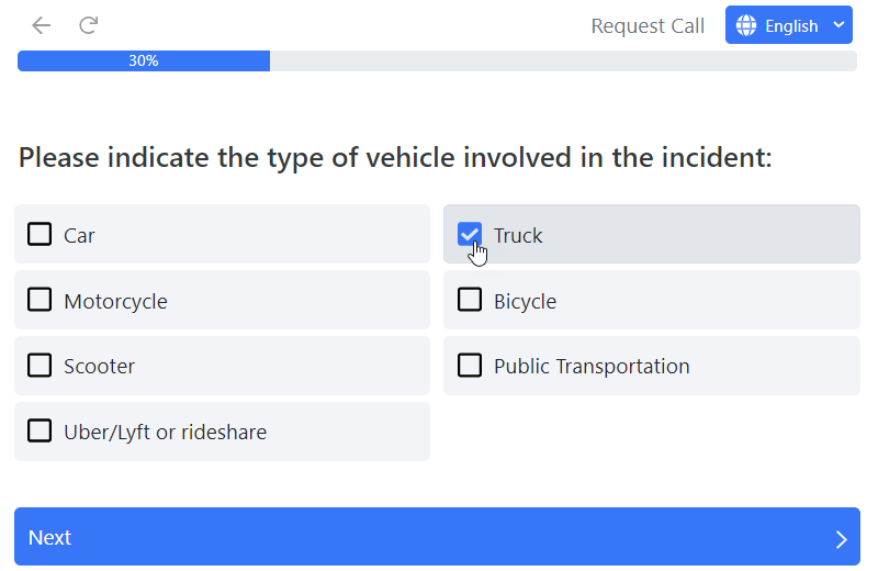 A new client may encounter the SimplyConvert Intake Bot in a variety of online settings, such as your firm’s website or an advertisement. The bot guides the client through a series of guided questions about their name and contact information, type of injury, how the injury occurred, and so on (Figure 1).