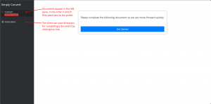 Depending on your firm’s settings, SimplyConvert can (a) automatically send certain documents to the portal or (b) wait for a user to tell the system to send documents. When a document is delivered to the portal, SimplyConvert can send the client an email and/or text notification that the document is available. When the client opens the portal, they see the document and instructions for acting on it.