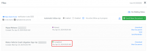 Figure 11. The Files tab, updated to show that the client has completed the additional documents.