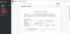 Figure 10. The portal with the HIPAA Release and other documents ready for the client to act on.